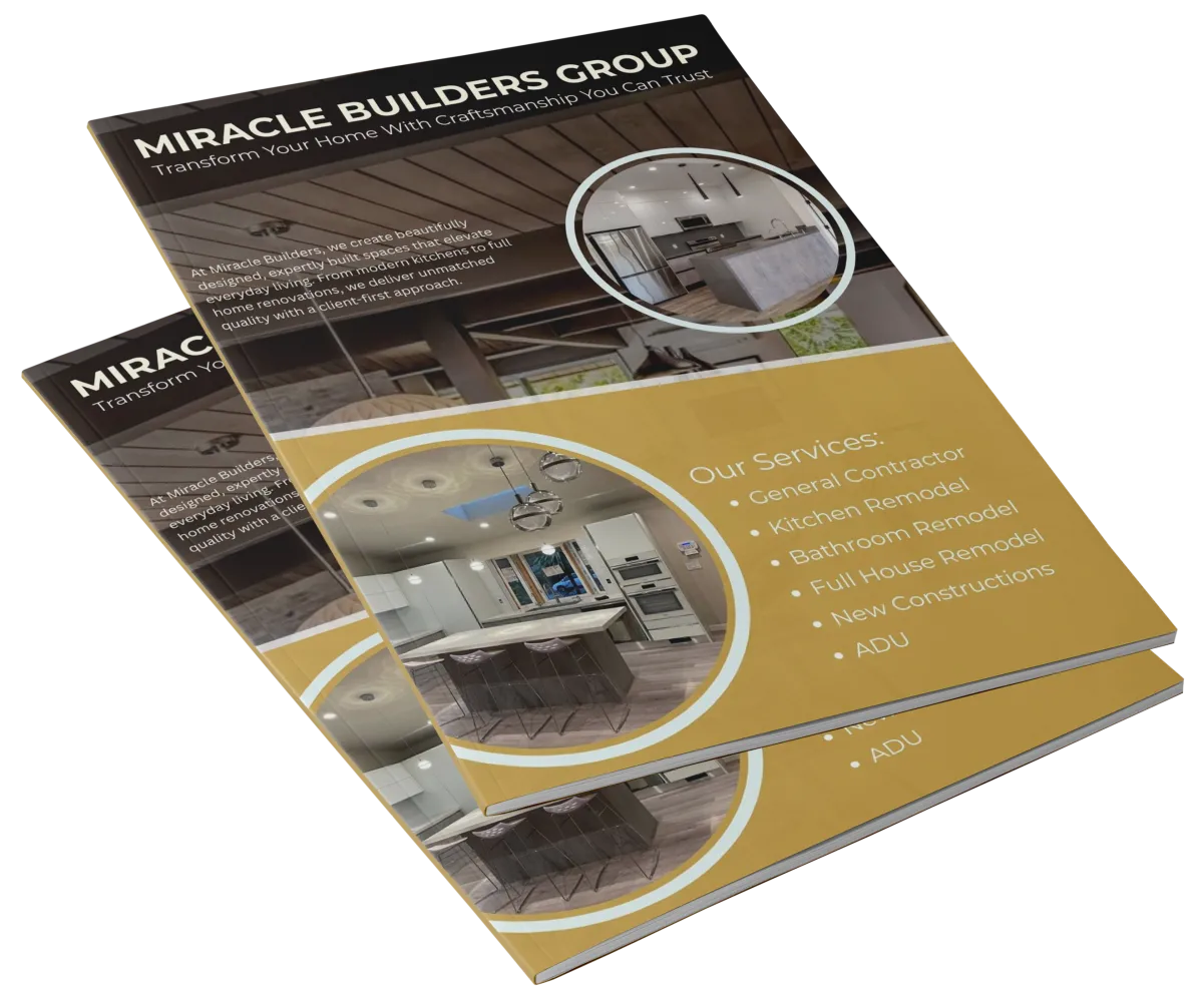 Unlock your home’s full potential with Miracle Builders’ complimentary remodeling and construction guide—crafted by owner Robert Berkovich—featuring real project insights, before-and-after transformations, and innovative ideas to inspire your next upgrade. Whether you’re planning a kitchen or bathroom remodel, a full home renovation, an addition, new construction, or an ADU, this guide equips you with the knowledge and vision to make confident, informed decisions and bring your dream space to life.
